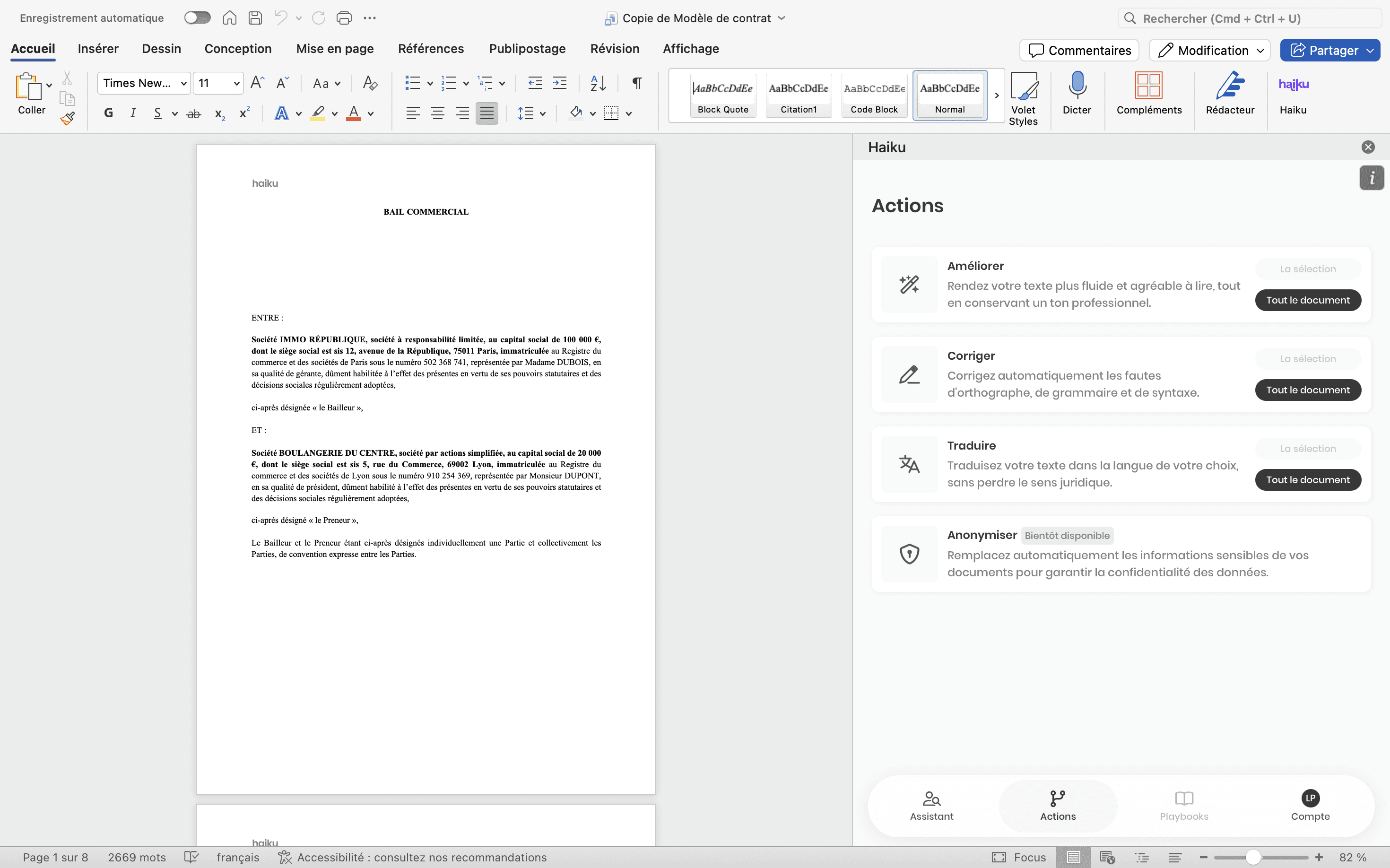 Conçu pour s’adapter à vos usages existants, Haiku vous permet de rédiger, modifier et améliorer vos documents sans jamais quitter Word.