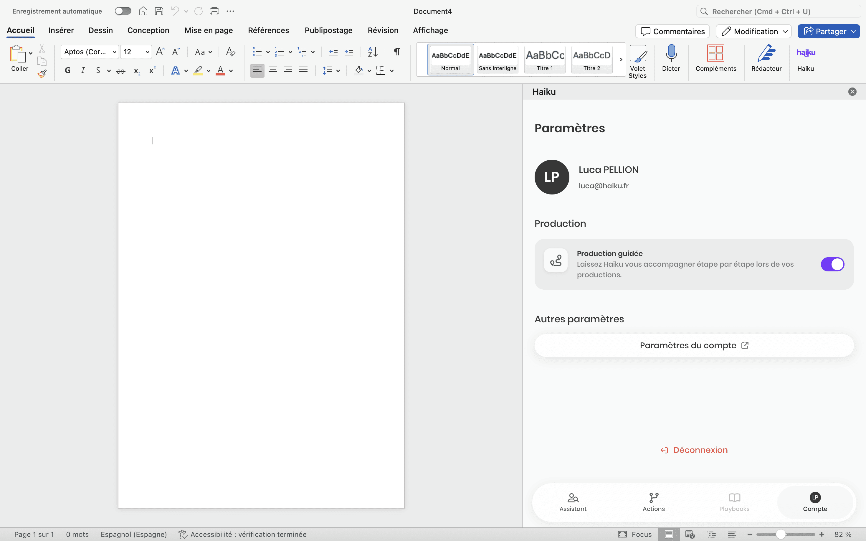 Guide complet de l'add-in Haiku pour Word.