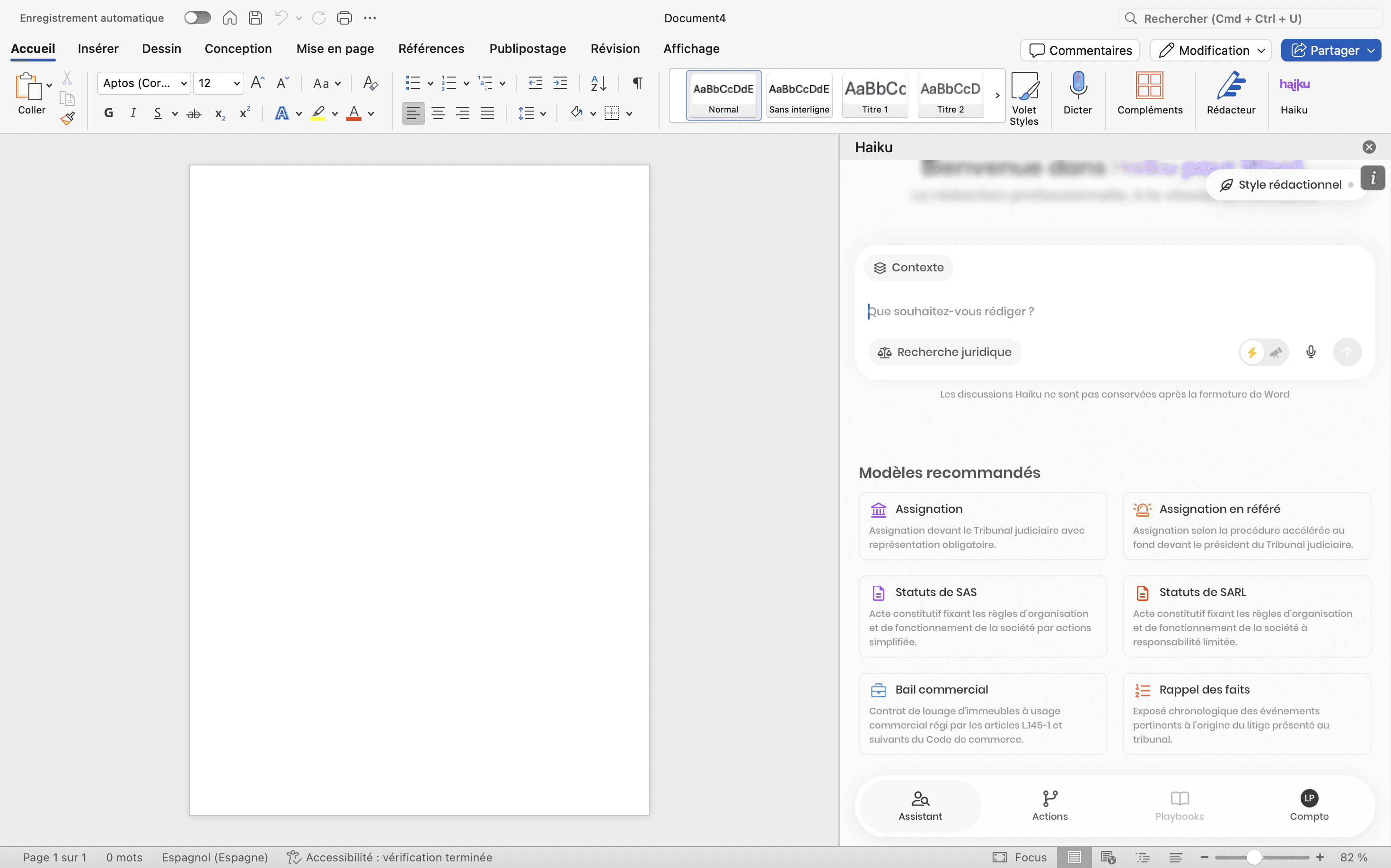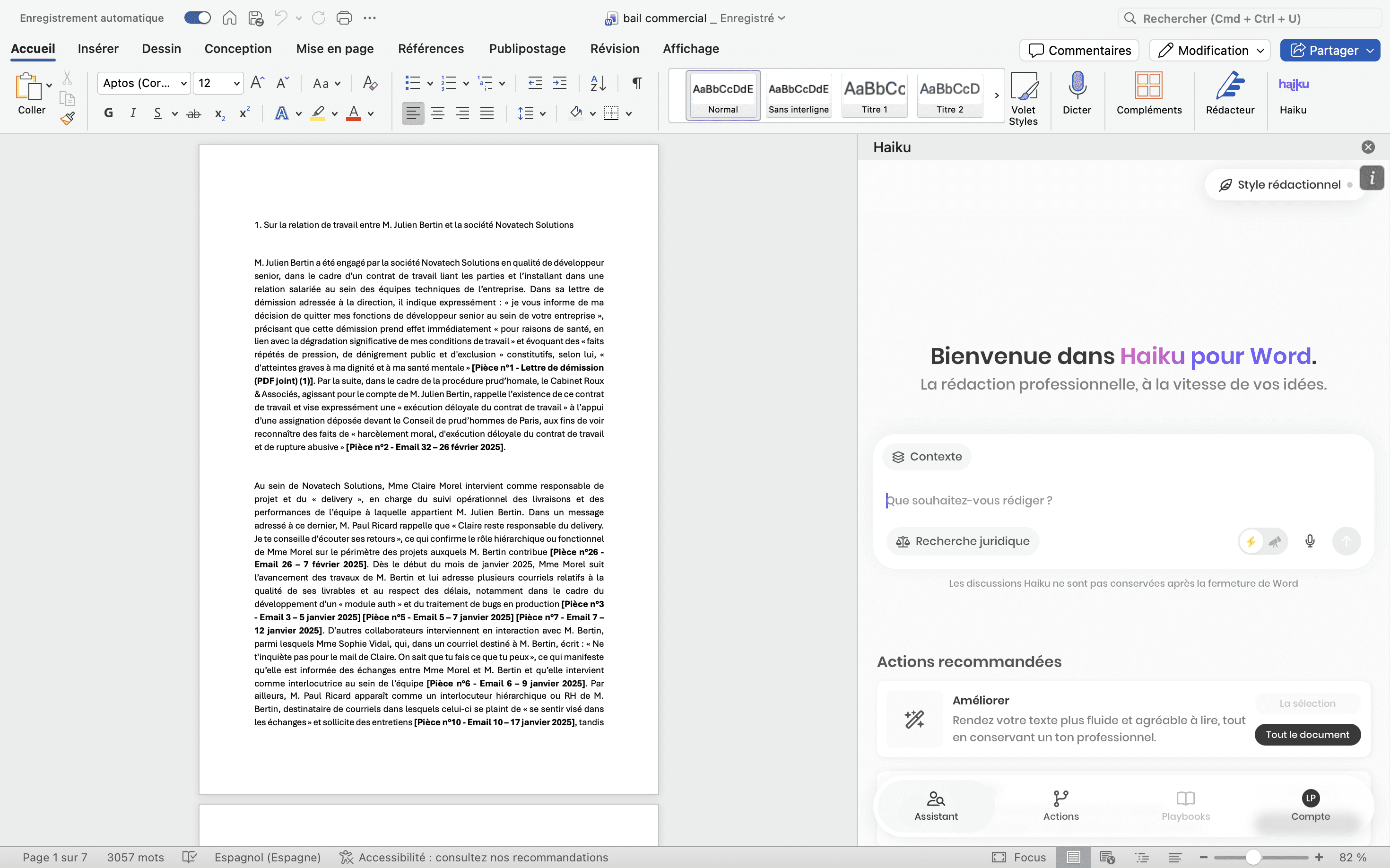 Haiku pour Word est un add-in qui intègre l’intelligence artificielle juridique directement dans Microsoft Word.