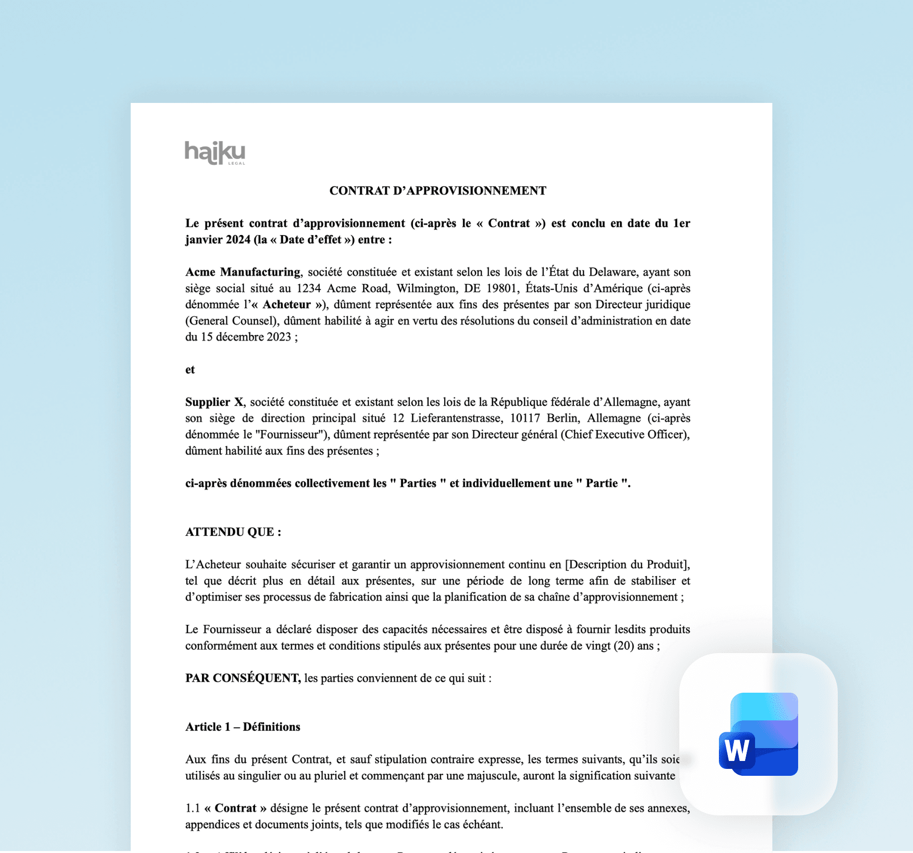 Assignation, conclusions, référé, contrat… Rédigez n'importe quel type de contenu juridique.