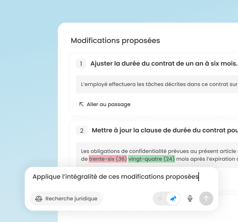 Interrogez en langage naturel l'ensemble de vos documents internes et l'intégralité du droit français et européen.